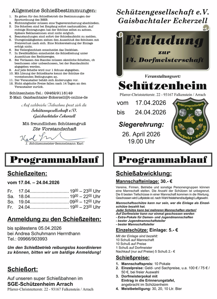 Einladung zur Dorfmeisterschaft 2026, (näheres siehe unten)