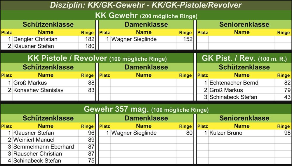 15.09.2025 - Seniorenklasse Gewehr 357 mag.: Kulzer Bruno - 98-Ringe (von 100 möglichen).